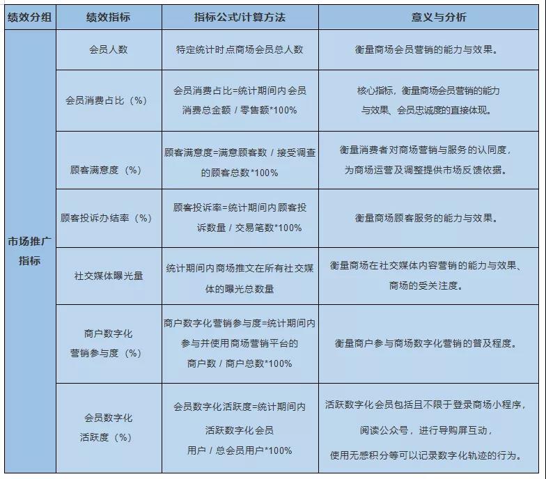 以下是中國百貨商業(yè)協(xié)會制定的2021《百貨和購物中心運營關鍵績效指標(KPI)體系》團標中推廣工作相關指標: