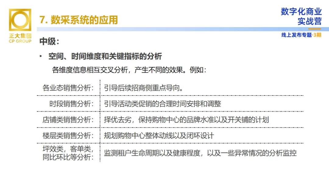 數(shù)據(jù)采集為正大商業(yè)帶來了哪些價(jià)值?向陽先生表示,數(shù)采對于商業(yè)運(yùn)營來講分為初級、中級和高級階段。