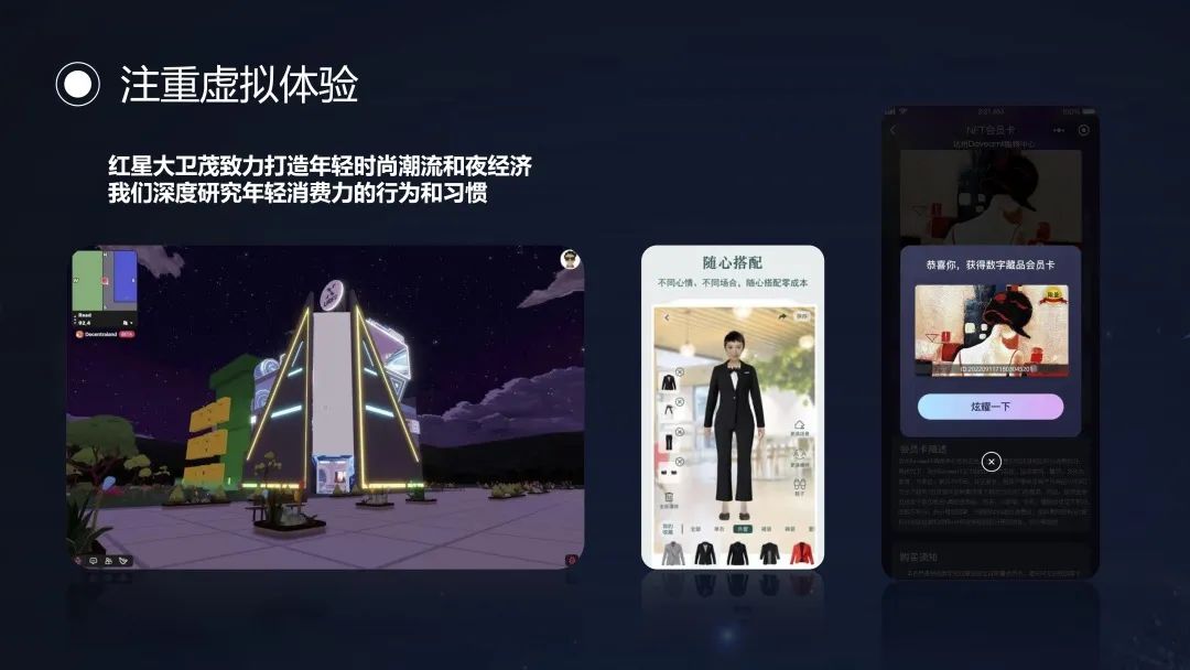 另外,虛擬游逛和購(gòu)物體驗(yàn)也值得重視。今年11月,達(dá)州大衛(wèi)茂購(gòu)物中心即將落子,商業(yè)體將融合元宇宙概念的虛擬游逛,為消費(fèi)者提供VR試衣間,并且準(zhǔn)備了具有藝術(shù)性、唯一性、收藏性的購(gòu)物中心會(huì)員卡,共同呈現(xiàn)給消費(fèi)者。