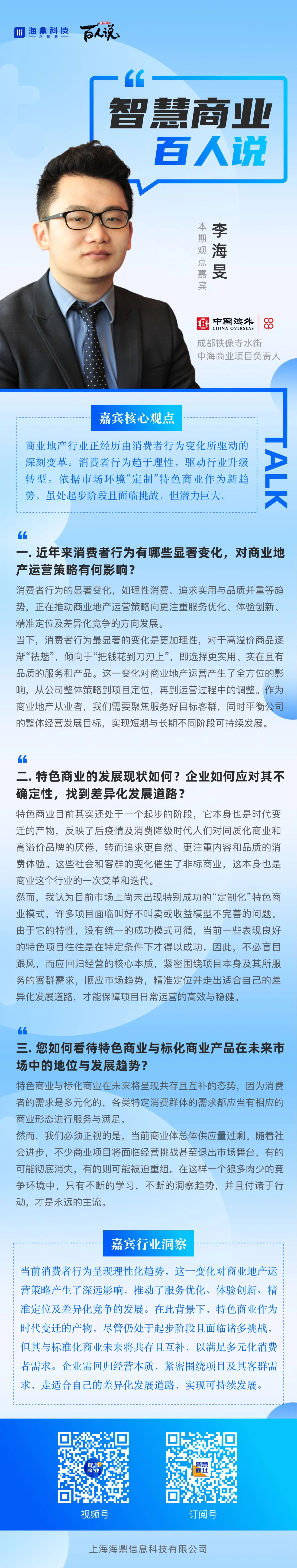 智慧商業(yè)百人說(shuō) | 成都鐵像寺水街李海旻:趨于理性的消費(fèi)者正在驅(qū)動(dòng)行業(yè)升級(jí)轉(zhuǎn)型